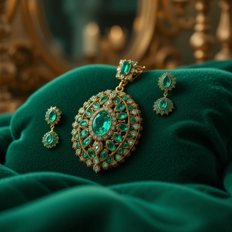 Premium Nauratan big Pendant set. Length Earrings: 2 inches. Length Chain: 23 inches. We send in proper gift boxes. Refund in case of any...